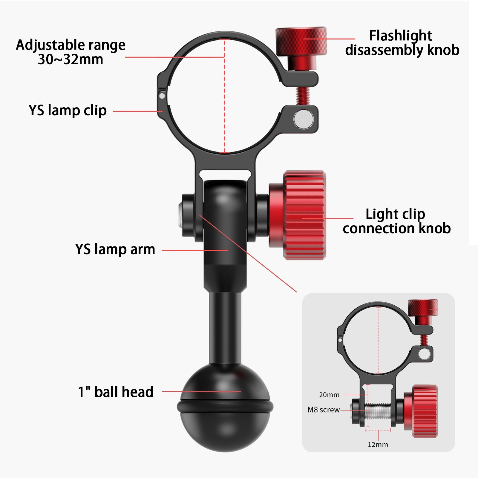 LetonPower 1" Ball Head to YS Clamp Dive Light Adapter