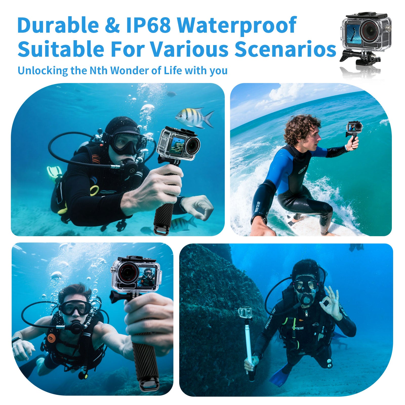 - 【IP68 Waterproof】With triple seal protection system - upgraded silicone waterproof ring + precision cut buckle + pressure balance valve, it can withstand 263FT/60M deep water pressure challenge