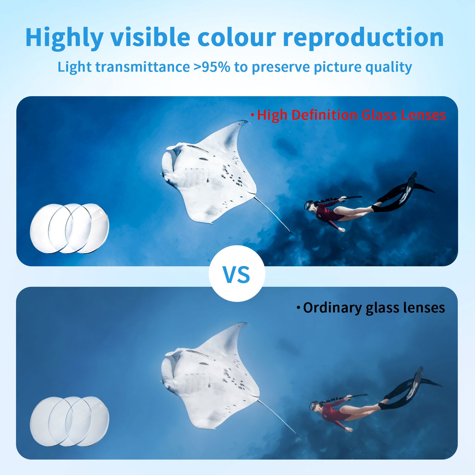 - 【Highly transparent and high-quality material】Made of high-quality PMMA plastic, it has a solid structure and a light transmittance of more than 95%, providing excellent transparency. Ensure that the underwater pictures are clear, vivid and realistic