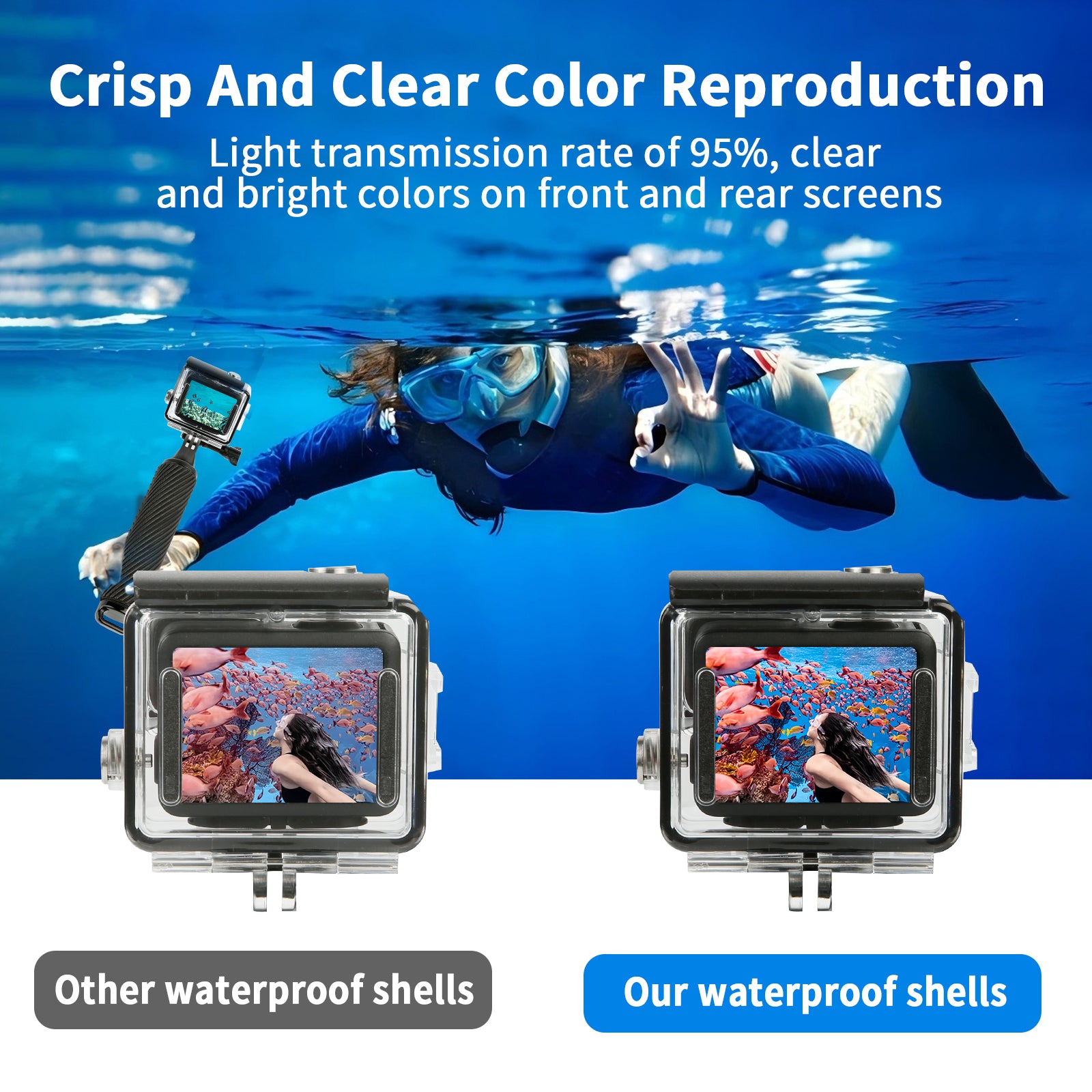 • 【IP68 Waterproof】With triple seal protection system - upgraded silicone waterproof ring + precision cut buckle + pressure balance valve, it can withstand 196FT/60M deep water pressure challenge