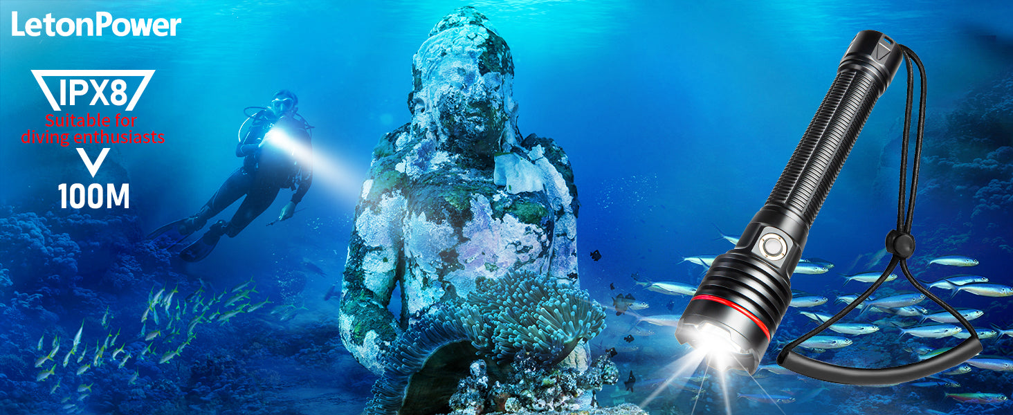 With a maximum brightness of up to 5000 lumens, Spotlight 8°,Floodlight 60°。.it easily penetrates murky waters to present you with a clear and bright underwater world.Concentrated light and long irradiation distance, even in the dark abyss, can also show you the way.