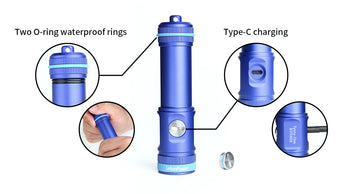 Tynny-13se Scuba diving flashlight adopts upgraded LED beads with maximum output up to 2200 lumens and 6500K cool white light, the coated head tempered glass has excellent underwater light transmission, and its narrow beam angle of 8° is designed to provide focused and intense illumination even in the darkest underwater environments, it is a reliable companion for your diving trips