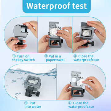 - 【Package Includes】1x waterproof housing, 1x quick pull movable socket, 1x screw, 6x anti-fog insert