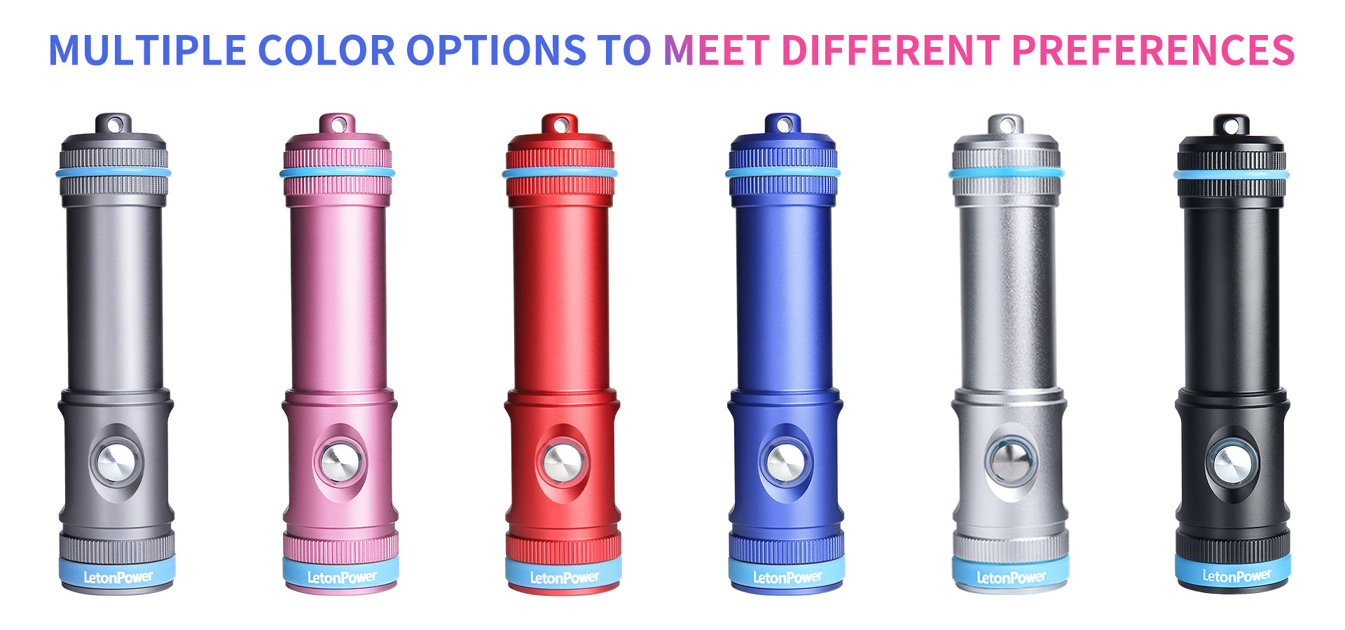 Tynny-13se Scuba diving flashlight adopts upgraded LED beads with maximum output up to 2200 lumens and 6500K cool white light, the coated head tempered glass has excellent underwater light transmission, and its narrow beam angle of 8° is designed to provide focused and intense illumination even in the darkest underwater environments, it is a reliable companion for your diving trips