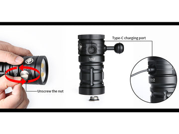- Unscrew the screws and charge the flashlight with a suitable charger.